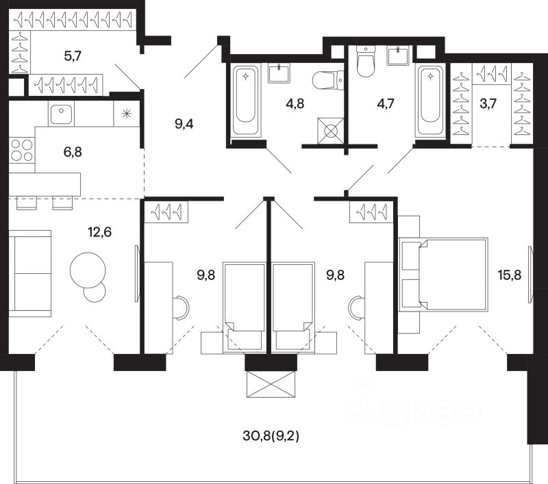 Продаётся 3-комнатная квартира в строящемся доме (з/у 11), срок сдачи: II-кв. 2027, общей площадью 92.3 кв.м., на 1 этаже. Новый жилой комплекс от застройщика "Садовое кольцо" расположен по адресу: Московская область, муниципальный округ Шаховская, посёлок городского типа Шаховская, улица Базаева