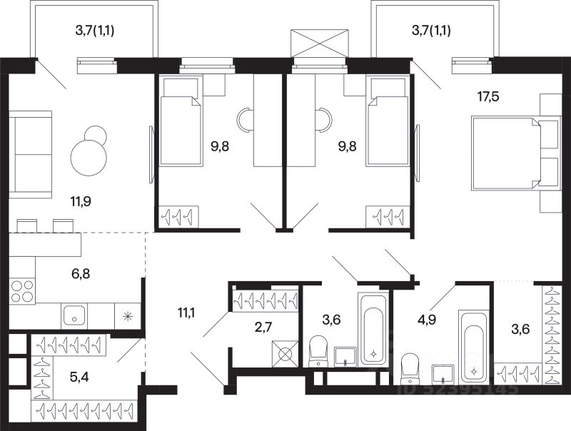 Продаётся 3-комнатная квартира в строящемся доме (з/у 11), срок сдачи: II-кв. 2027, общей площадью 89.3 кв.м., на 2 этаже. Новый жилой комплекс от застройщика "Садовое кольцо" расположен по адресу: Московская область, муниципальный округ Шаховская, посёлок городского типа Шаховская, улица Базаева