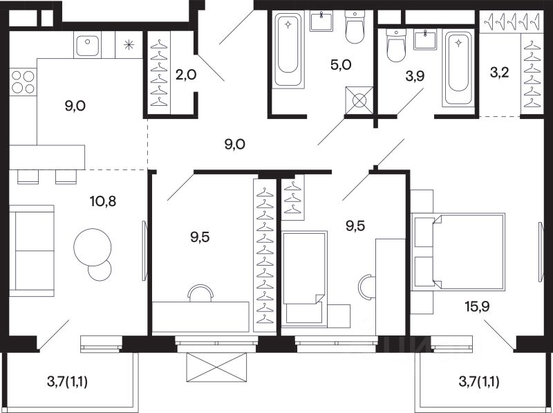 Продаётся 3-комнатная квартира в строящемся доме (з/у 11), срок сдачи: II-кв. 2027, общей площадью 80 кв.м., на 3 этаже. Новый жилой комплекс от застройщика "Садовое кольцо" расположен по адресу: Московская область, муниципальный округ Шаховская, посёлок городского типа Шаховская, улица Базаева