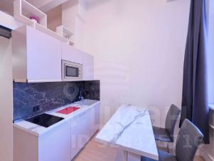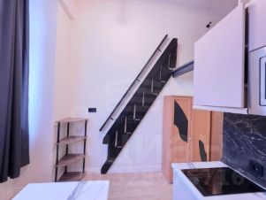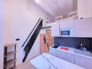 Студия с большим окном, с установленными двухкамерными стеклопакетами, отделка выполнена в светлых нейтральных тонах, сборная мебельная антресоль и высокие потолки (3,75 м) позволяют увеличить используемое пространство.