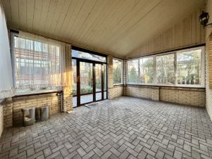На веранде установлены пластиковые окна-слайдеры, которые в теплое время позволяют отдыхать на свежем воздухе.