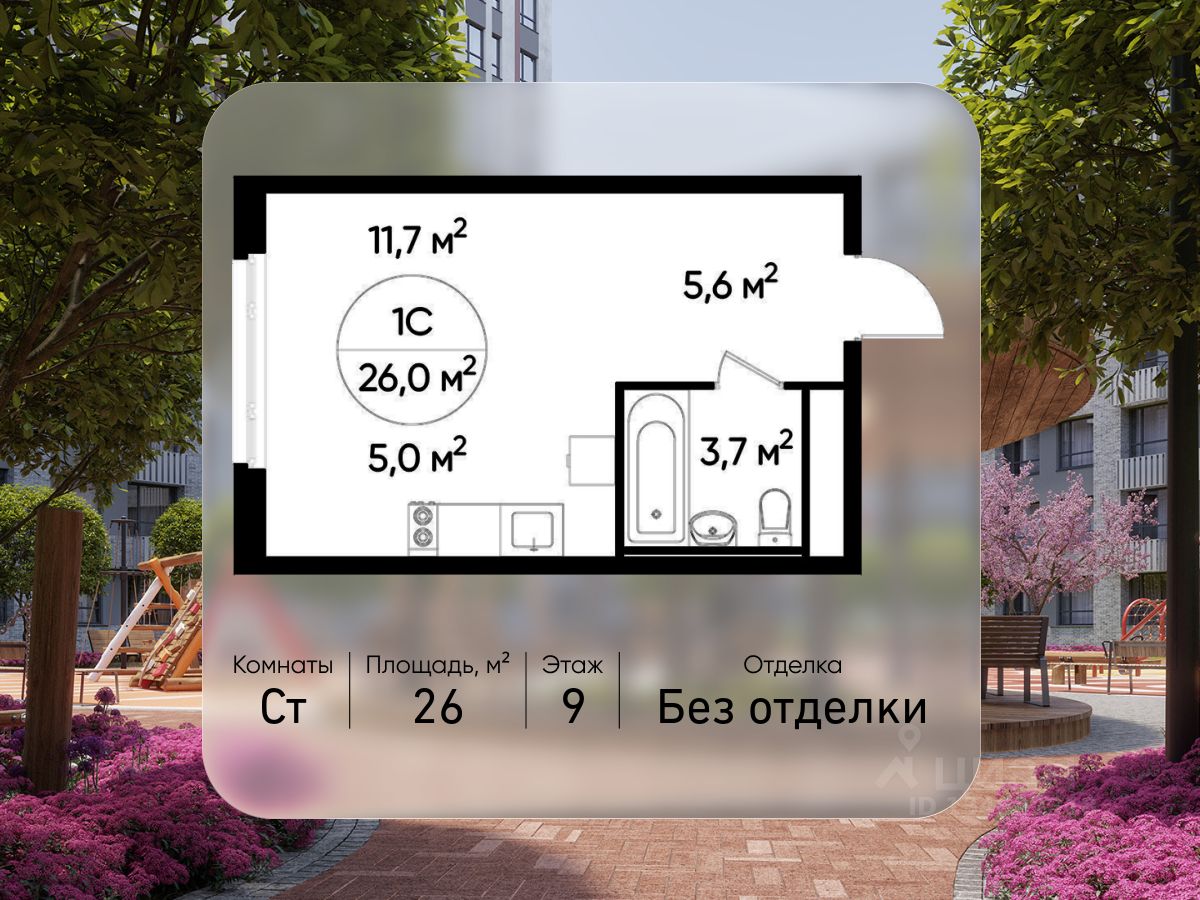 Общая площадь квартиры - 26 кв. м, этаж 9 из 17.