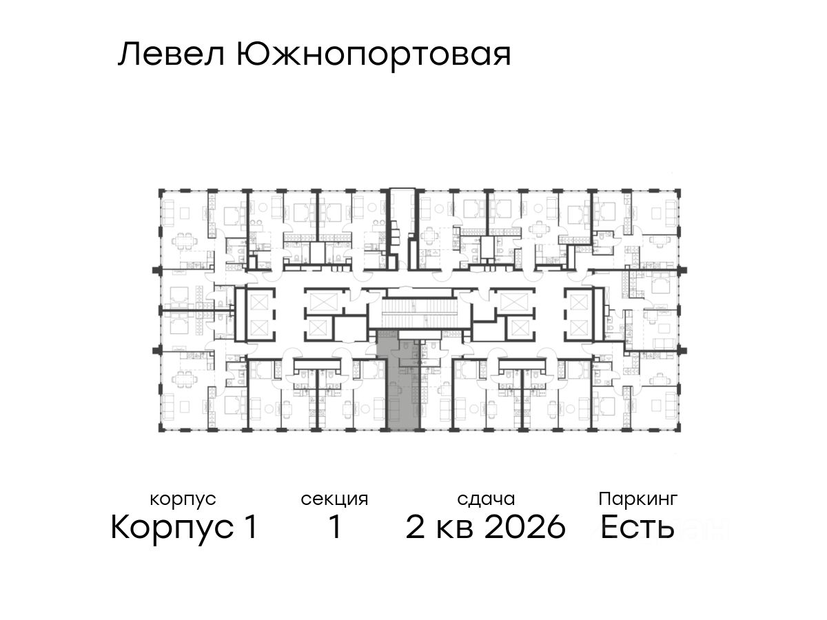 В северной части района Печатники продается студия площадью 23.50 кв.м без отделки. Квартира расположена на 16 этаже 69-этажного корпуса 1 в жилом комплексе комфорт-класса Левел Южнопортовая (компания Level Group/Левел групп).