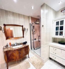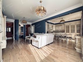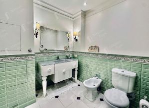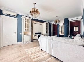 В интерьере использованы высококачественные материалы и стильная дизайнерская мебель, кухня оснащена современной премиальной техникой, а в санузлах установлена европейская сантехника высокого класса. Квартира полностью готова к проживанию.