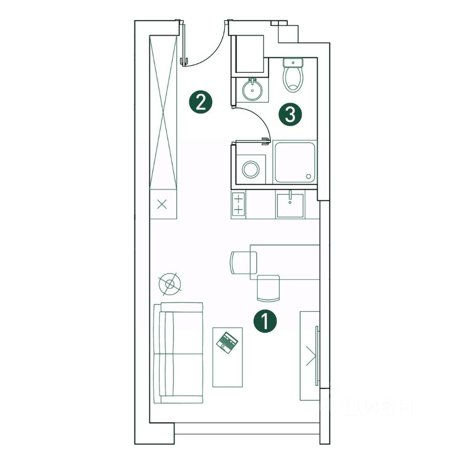 Продается студия площадью 26 кв.м. на 8-м этаже 32 этажного дома в ЖК "ВЭРИ на Ботанической" от ГК ОСНОВА.