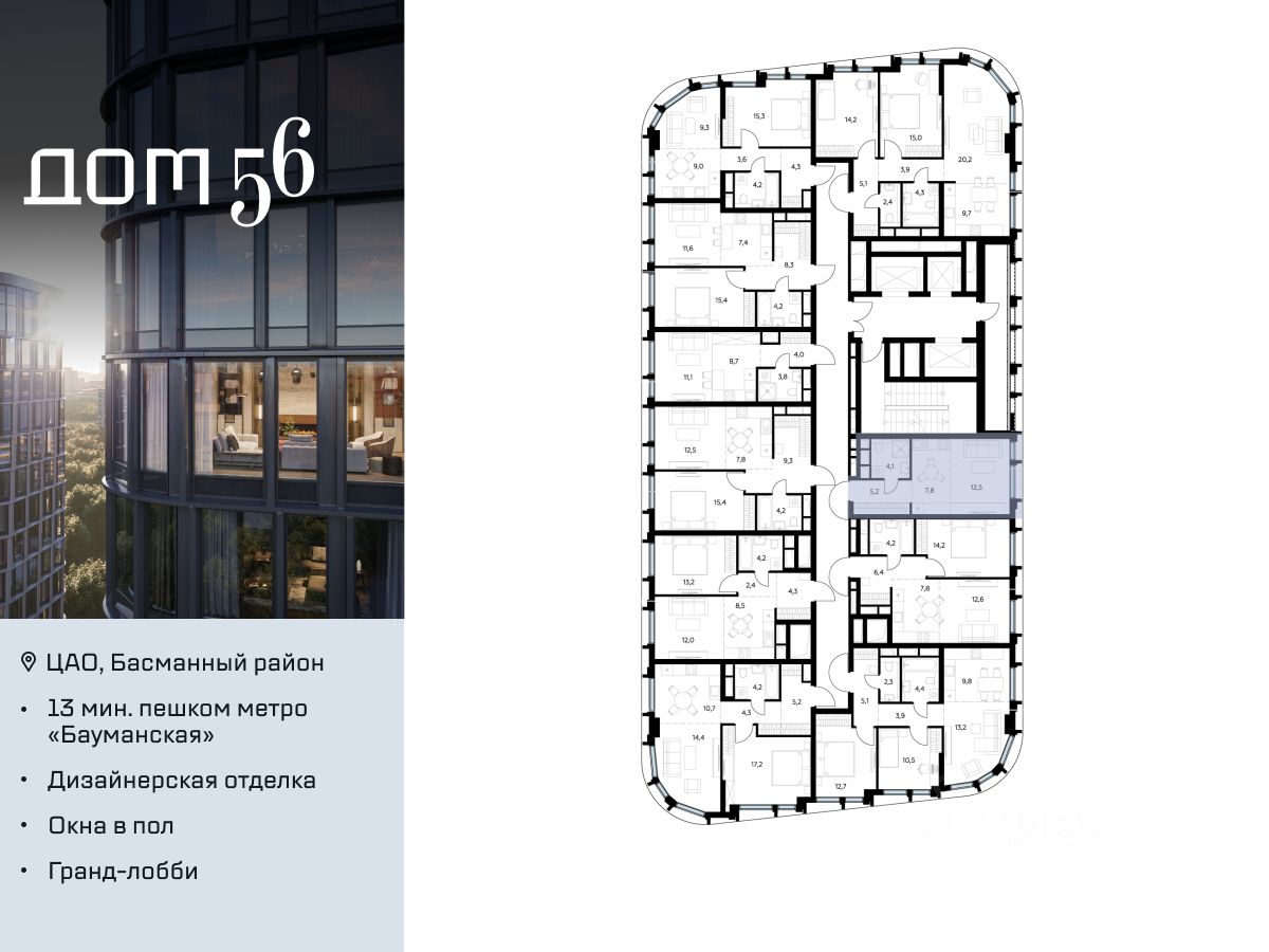 "Дом 56" - расположен в Басманном районе на ул. Фридриха Энгельса, всего в 12-15 минутах пешком от станций метро "Бауманская" и "Электрозаводская".