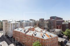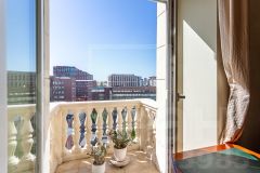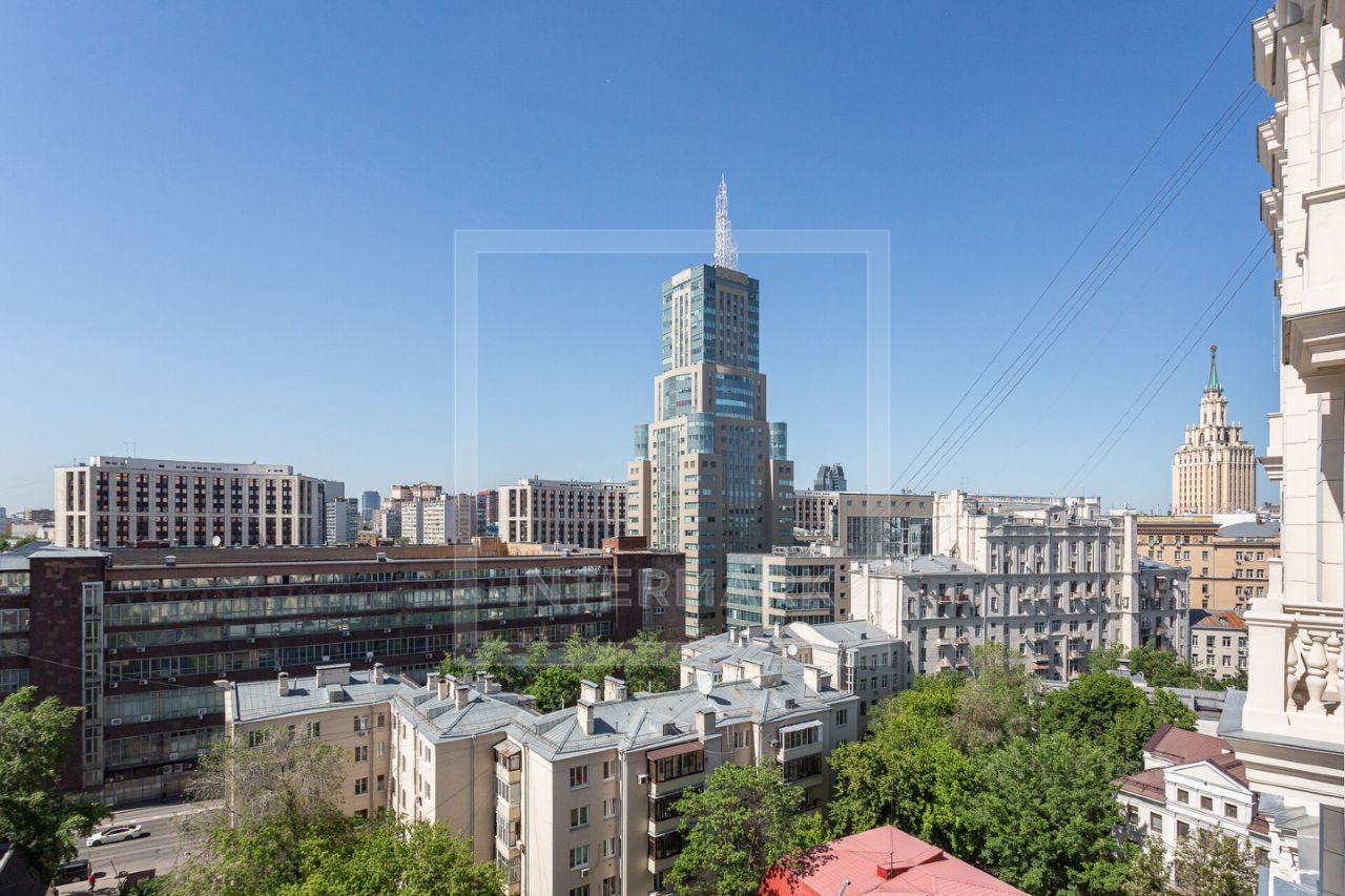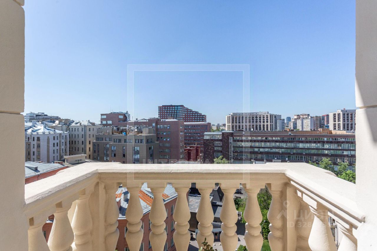 Высокие потолки 3,32 метра создают невероятное ощущение простора, а толстые кирпичные стены шириной около 1 метра обеспечивают идеальную тишину. Из всех окон и с 2 балконов с балясинами открывается впечатляющий вид на историческую панораму Москвы. 2 выхода из квартиры (один - парадный, второй ведет во внутренний двор).