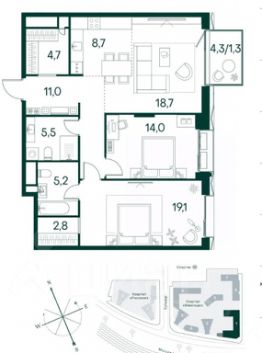 Под панорамными окнами квартир находится собственный экопарк с продуманной сетью прогулочных дорожек и современными детскими и спортивными площадками. За парком расположена набережная с собственным пляжем и зонами для отдыха.