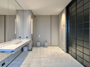 Дизайн интерьера строится на диалоге фактур и безупречных пропорциях. Натуральный тонированный шпон, массив дерева, мрамор Bianco Perlino и выразительный Silk Georgette создают глубокую, сдержанную палитру. Природные материалы здесь подобраны с особым вниманием к их энергетике, создавая живительную и стабильную атмосферу. Это пространство для тех, кто ценит не очевидный блеск, а подлинную материальность и тихую элегантность. Здесь это особенно тонко проявляется: белый кирпич, матовая полированная сталь, палево-серый шпон, тонкие шерстяные и белые ткани, обилие натурального льна.