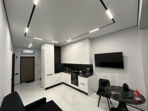 42,5 м², евродвушка: просторная светлая гостиная с кухней и отдельная спальня.