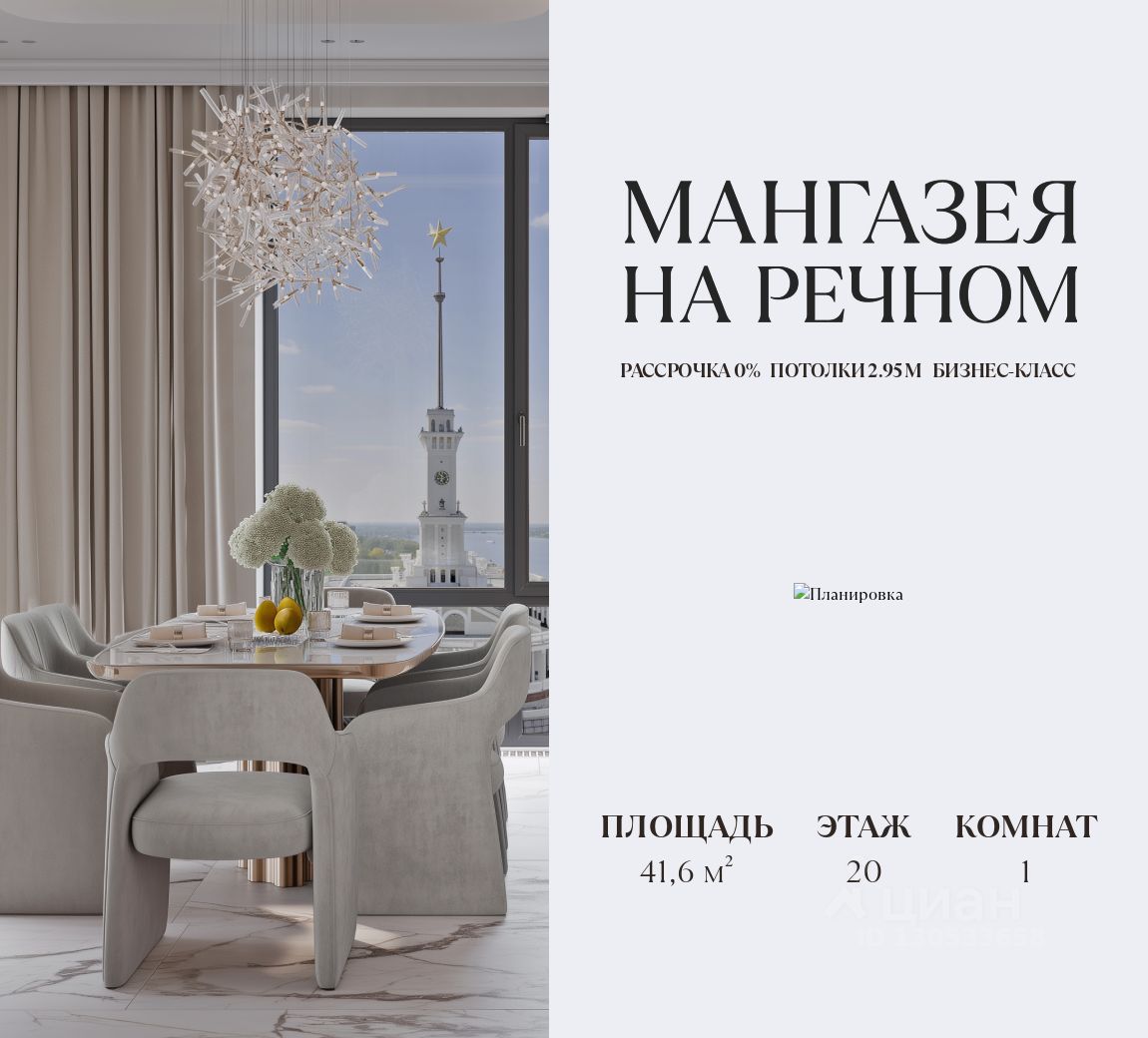 В первых корпусах "Мангазеи на Речном" представлены квартиры бизнес-класса с мастер-спальнями, террасами и видами на парк. Эксклюзивные форматы лоты с увеличенной высотой потолков и собственными выходом на благоустроенную территорию.