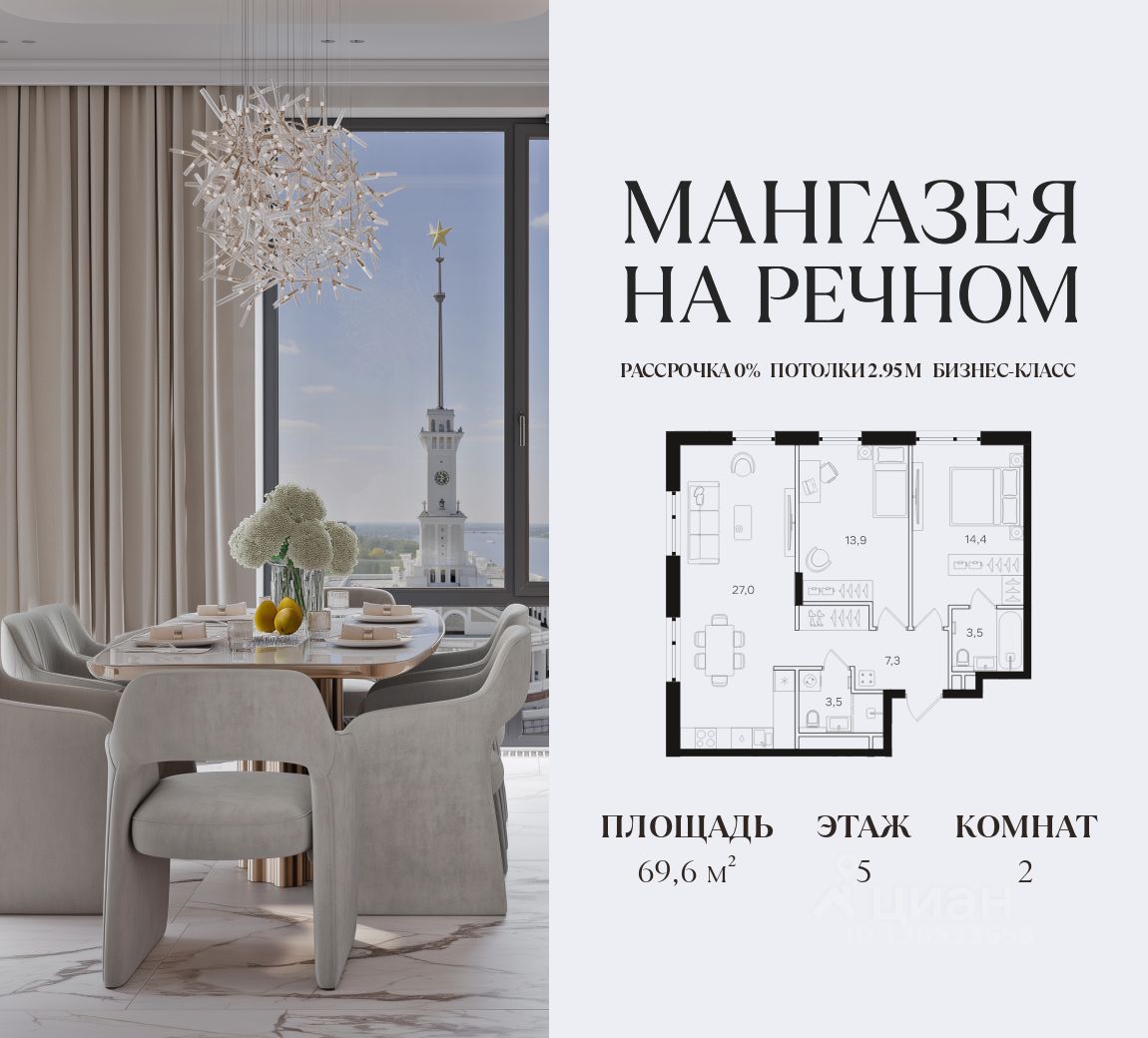 В первых корпусах "Мангазеи на Речном" представлены квартиры бизнес-класса с мастер-спальнями, террасами и видами на парк. Эксклюзивные форматы лоты с увеличенной высотой потолков и собственными выходом на благоустроенную территорию.