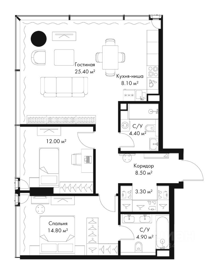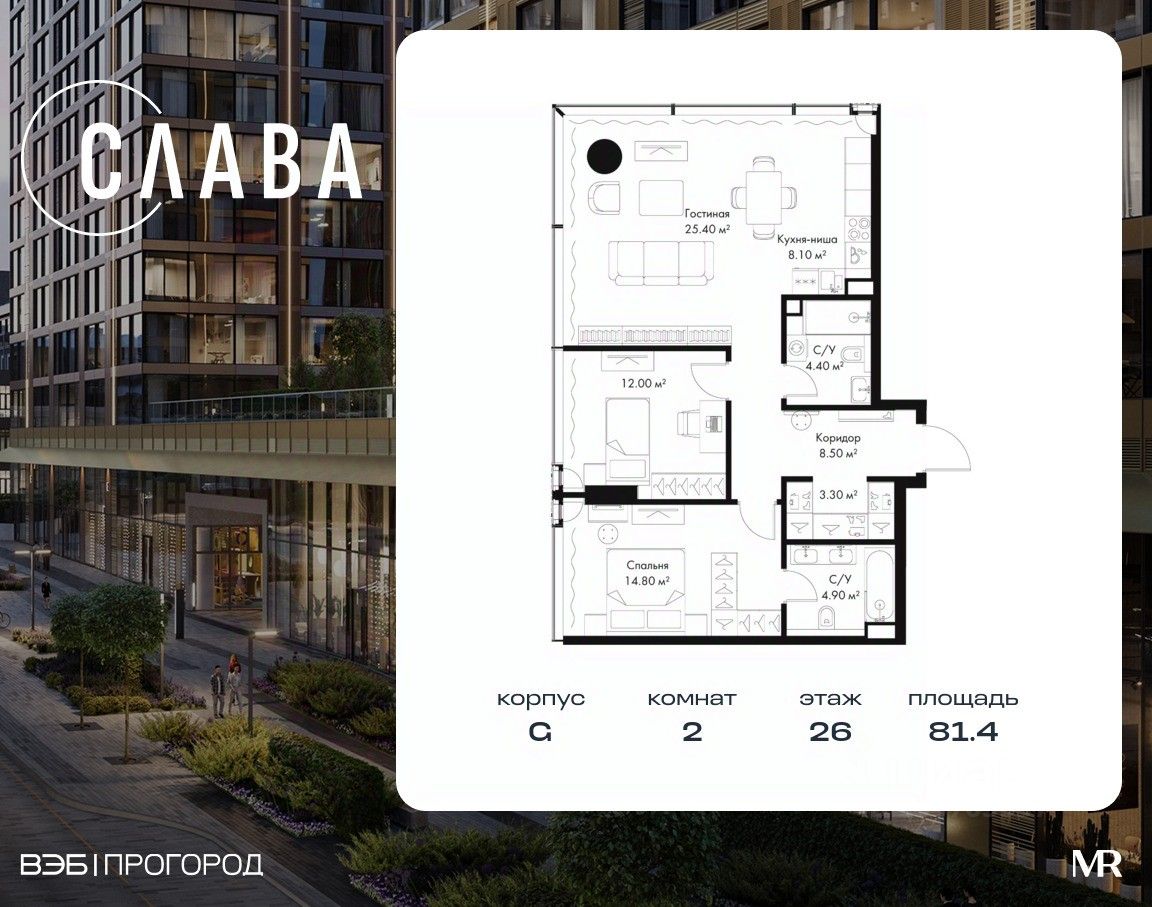 В продаже 2-комнатная квартира площадью 81.40 м² на 26-м этаже корпуса G.