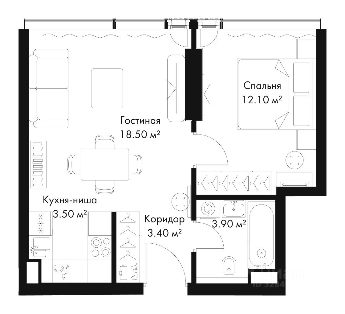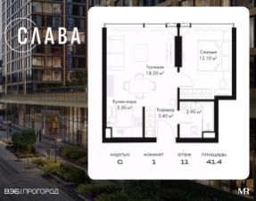 В продаже 1-комнатная квартира площадью 41.40 м² на 11-м этаже корпуса G.