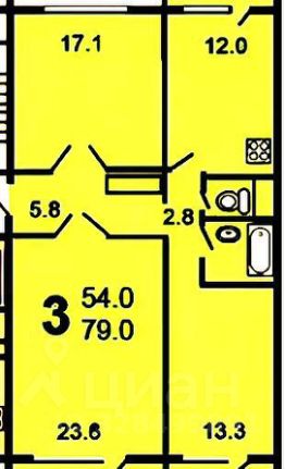 КВАРТИРА: 3-комнатная, расположена на 1 этаже, общая площадь 79,5 м², жилая площадь 54 м², площадь кухни 12 м², санузел раздельный. Планировка распашонка, комнаты изолированные (23,5/17/13,5 м²), есть кладовка 2х1,5 м². Окна во двор. Ремонт косметический. Остается мебель и техника (кухня, шкафы, спальные места, кондиционер, холодильник, стиральная машина).