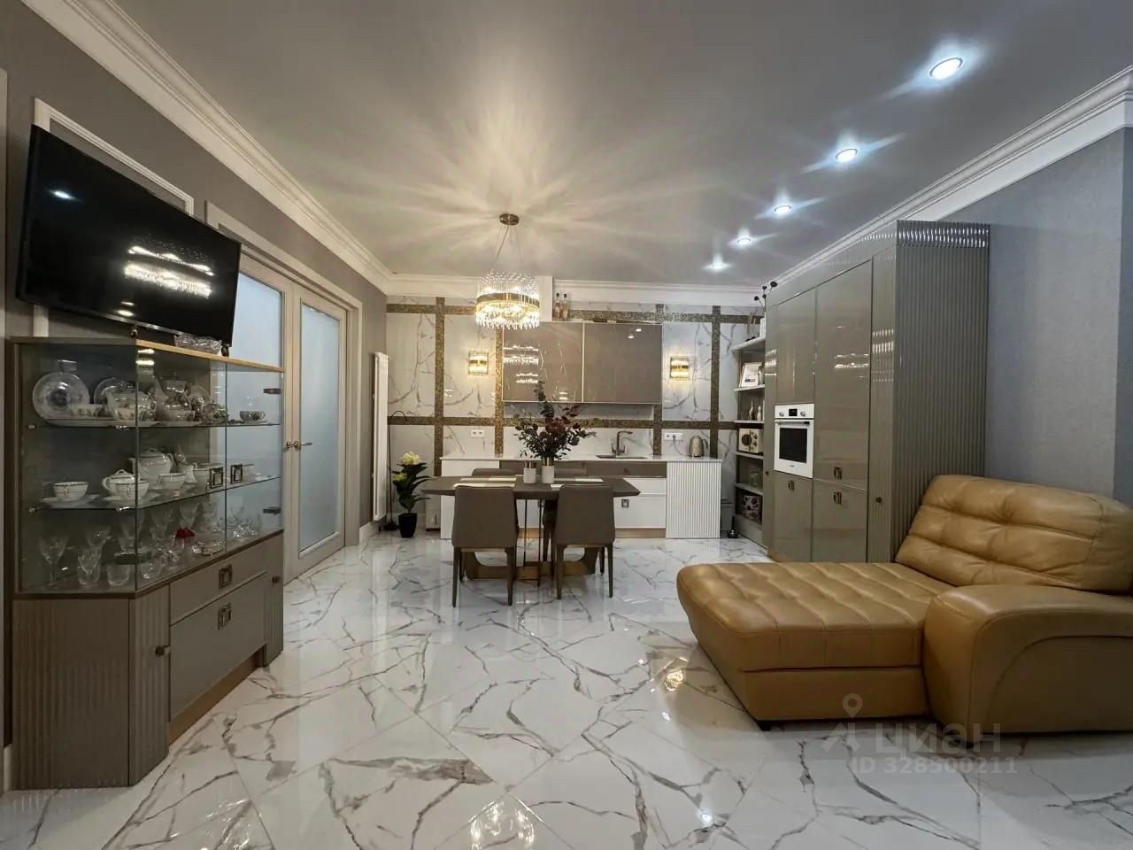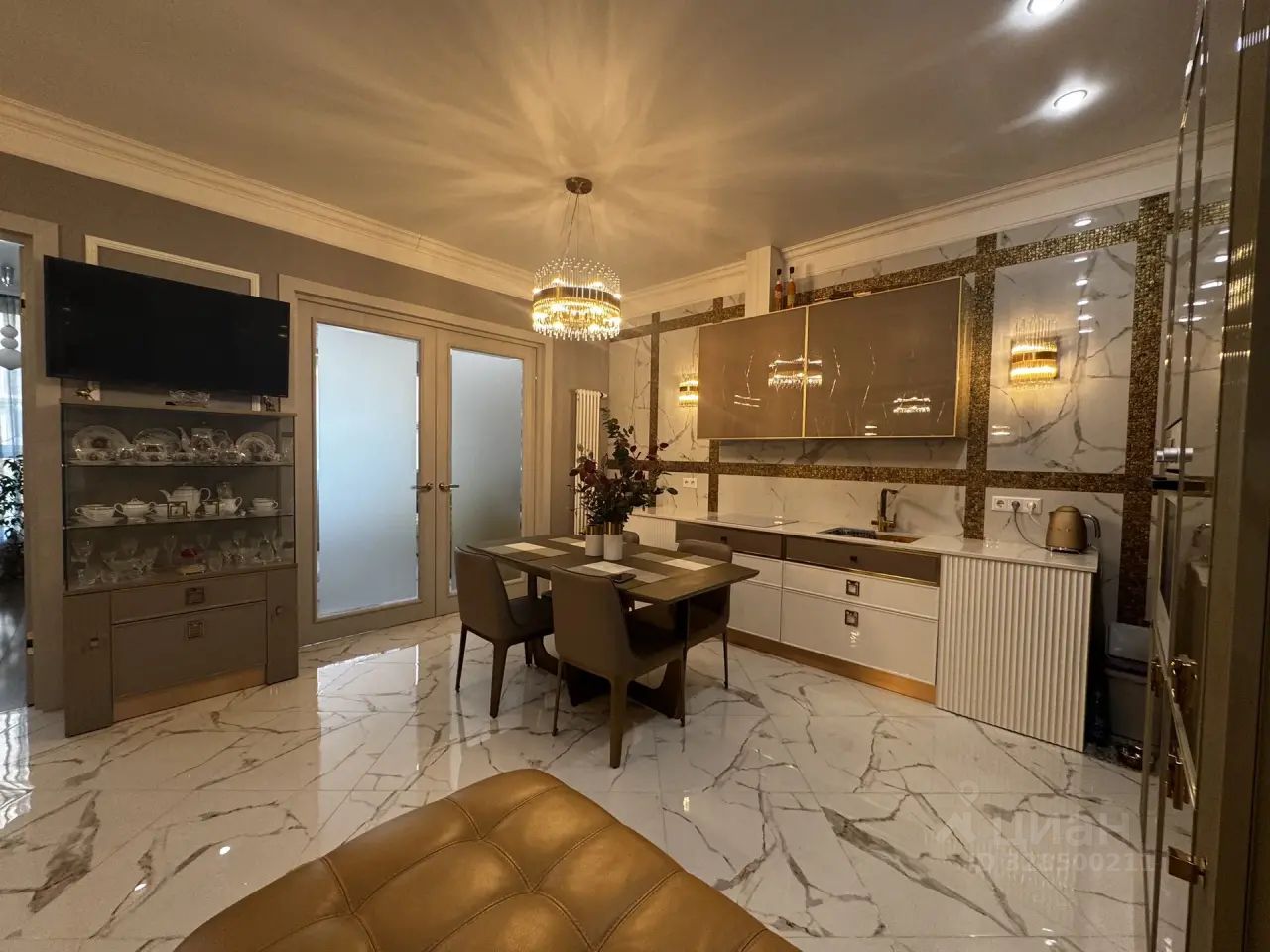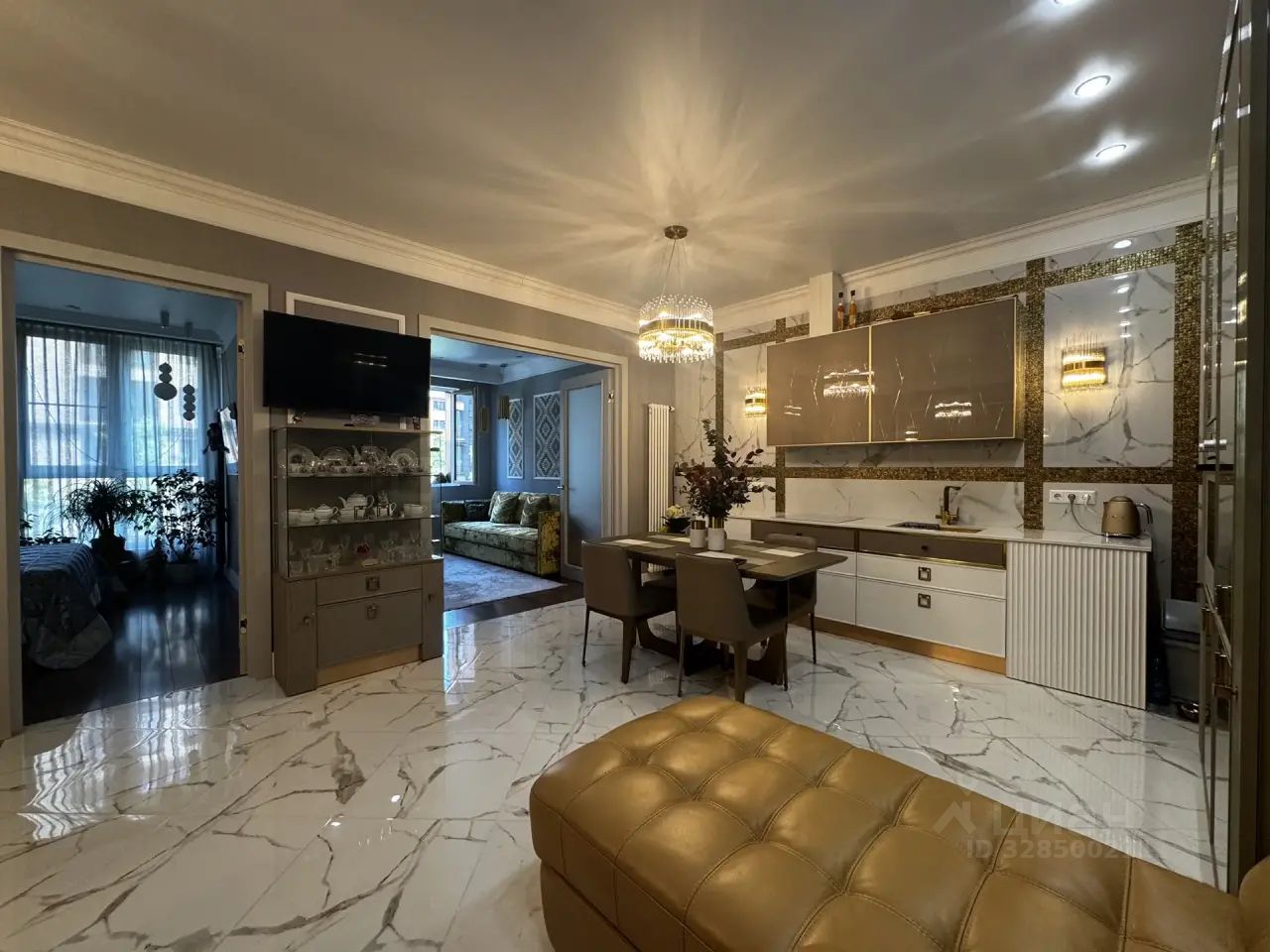 Britannica, кровать пр-во Испания, шкаф пр-во США, столовая мебель пр-во Италия, три телевизора нового поколения, домашний кинотеатр, два холодильника, стиральная и посудомоечная машины - все, согласно рекламным фото входит в стоимость квартиры.
