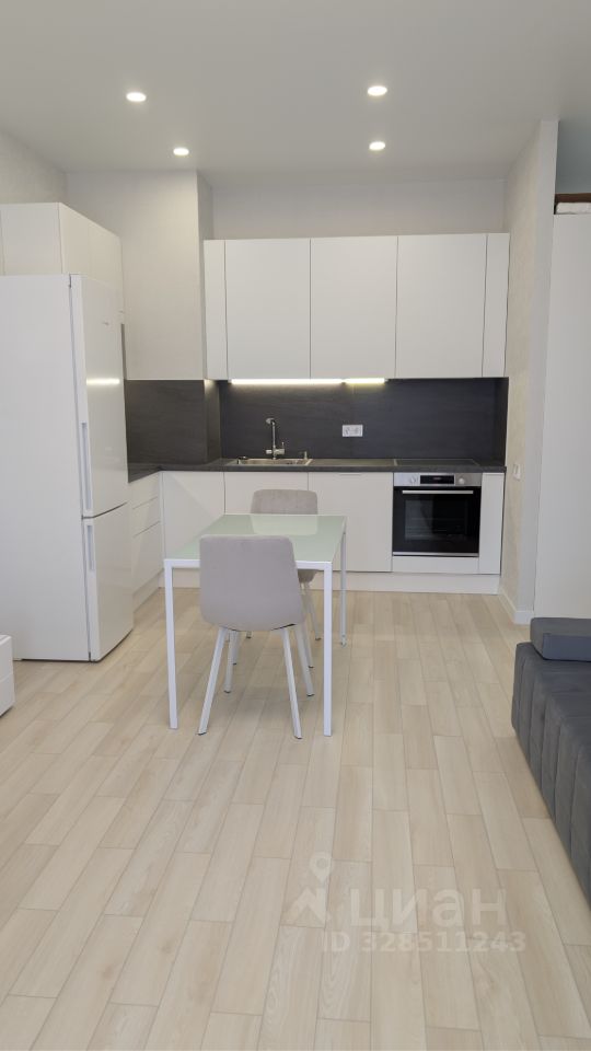 Кухня со всей необходимой встроенной техникой.