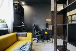 В кабинете (13 кв. м) компьютерный стол с креслом, книжный стеллаж, диван.