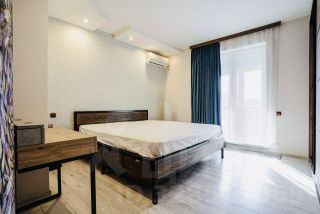 В спальне (16 кв. м) большая двухместная кровать ("Moonzana"), вместительный шкаф-купе, кондиционер, ниша под гардероб и доступ в отдельную ванную комнату.