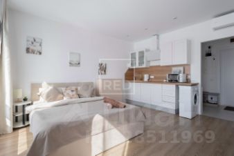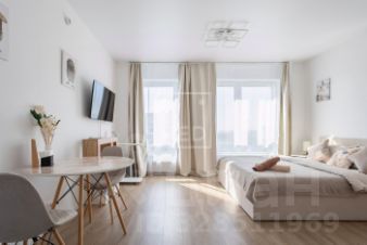 Произведён качественный ремонт от застройщика , современный дизайн и продуманное зонирование. Два панорамных окна из которых открывается горизонт, наполняют студию светом. Квартира готова к проживанию, полностью меблерована с бытовой техникой : тв, стиральная машина, кондиционер, варочная панель, духовой шкаф, свч, эл. чайник.