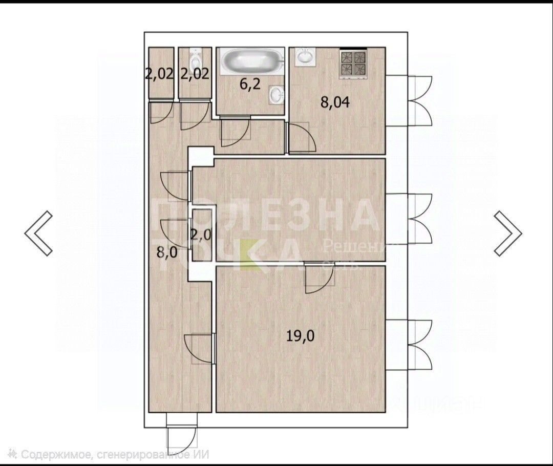 - две изолированные комнаты площадью 19 и 13 кв.м;