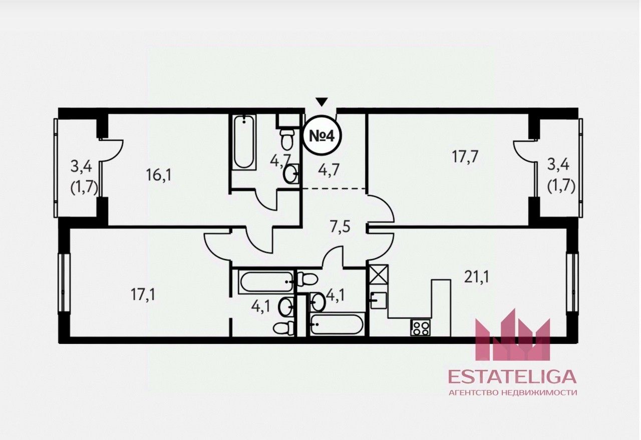 Id 50763. Вашему вниманию предлагается ШИКАРНАЯ трёхкомнатная квартира с совмещенной кухней гостиной в жилом комплексе бизнес-класса "Настоящее".