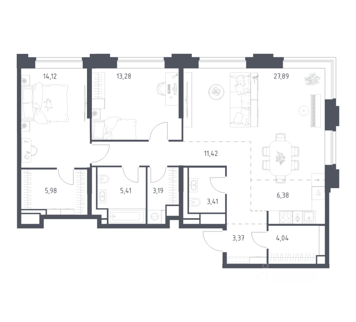 Вы можете сразу заказать мебель, технику, декор и текстиль. Уникальный интерьер подчеркнет ваш вкус. Для тех, кто хочет самостоятельно обустроить пространство с нуля, возможна сдача помещения без отделки.