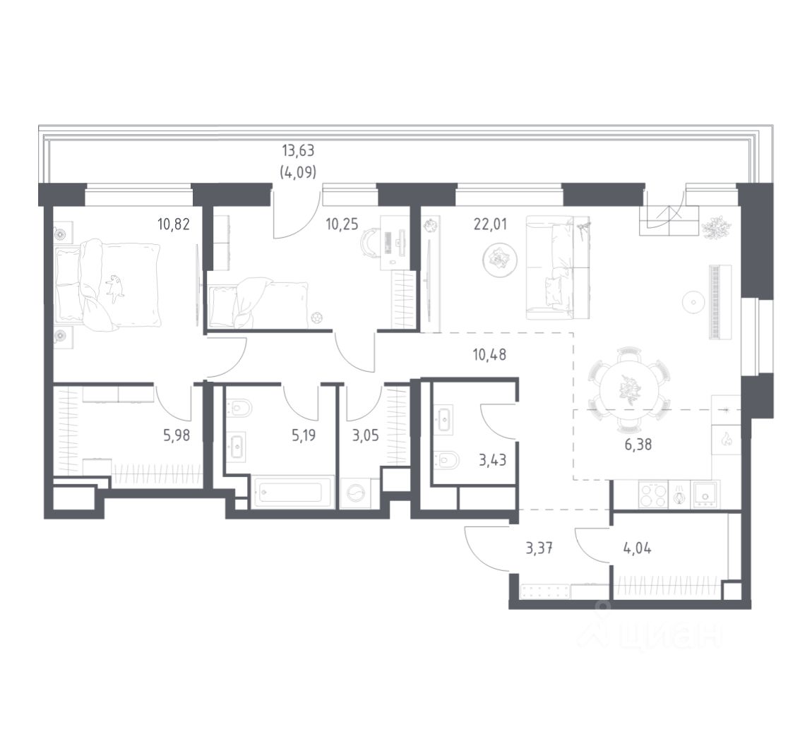 Строим кварталы для жизни с заботой о будущем. Предлагаются 2-комнатные апартаменты бизнес-класса площадью 89,09 кв.м в корпусе 4.2 на 6-м этаже, в жилом комплексе "Верейская 41".