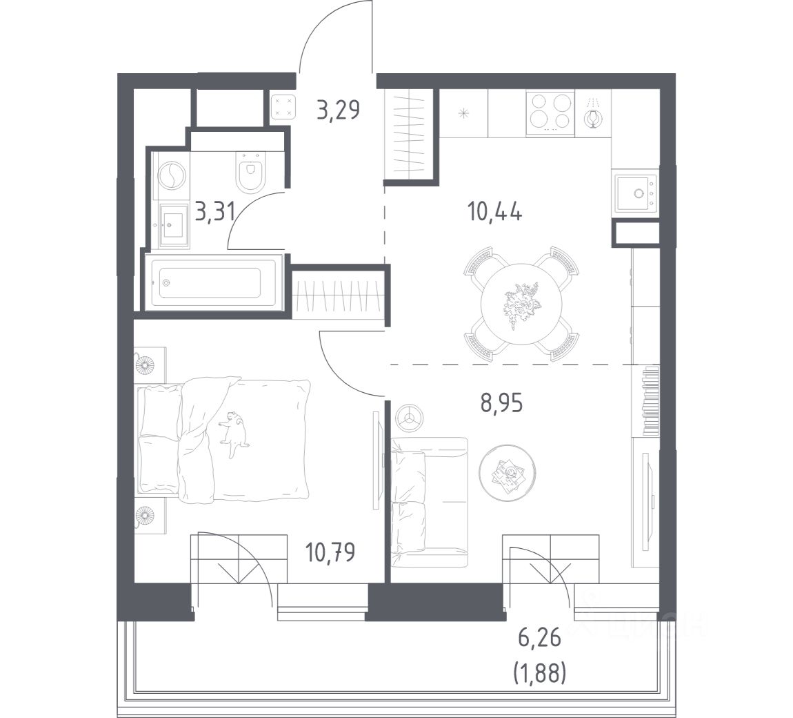 Строим кварталы для жизни с заботой о будущем. Предлагаются 1-комнатные апартаменты бизнес-класса площадью 38,66 кв.м в корпусе 4.2 на 6-м этаже, в жилом комплексе "Верейская 41".