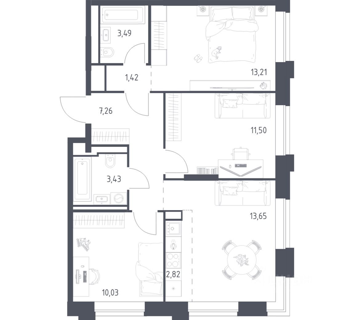Вы можете сразу заказать мебель, технику, декор и текстиль. Уникальный интерьер подчеркнет ваш вкус. Для тех, кто хочет самостоятельно обустроить пространство с нуля, возможна сдача помещения без отделки.