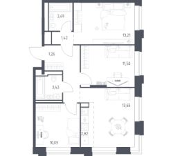 Строим кварталы для жизни с заботой о будущем. Предлагаются 3-комнатные апартаменты бизнес-класса площадью 66,81 кв.м в корпусе 4.1 на 6-м этаже, в жилом комплексе "Верейская 41".