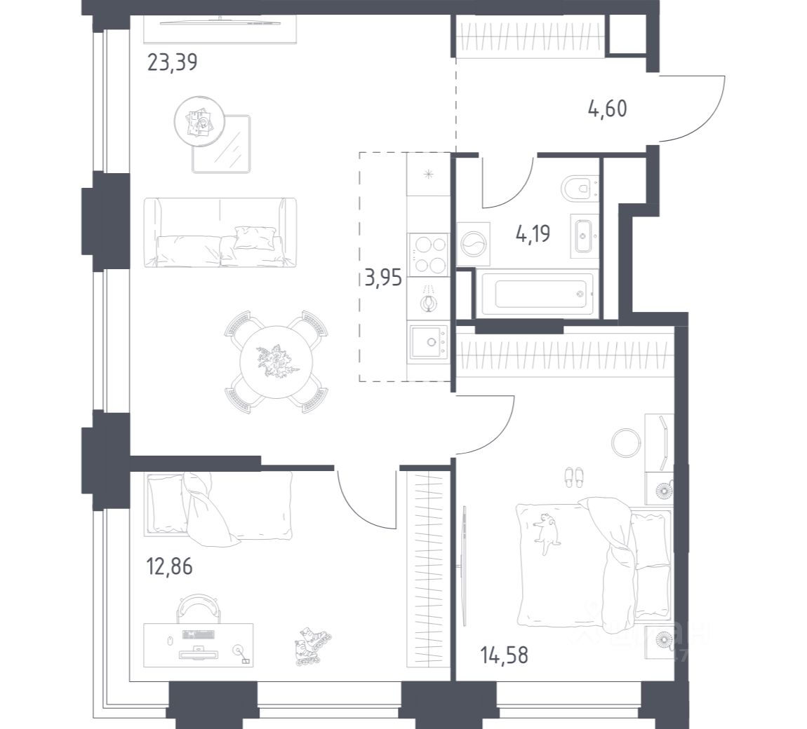 Вы можете сразу заказать мебель, технику, декор и текстиль. Уникальный интерьер подчеркнет ваш вкус. Для тех, кто хочет самостоятельно обустроить пространство с нуля, возможна сдача помещения без отделки.