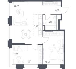 Строим кварталы для жизни с заботой о будущем. Предлагаются 2-комнатные апартаменты бизнес-класса площадью 63,57 кв.м в корпусе 3.2 на 2-м этаже, в жилом комплексе "Верейская 41".