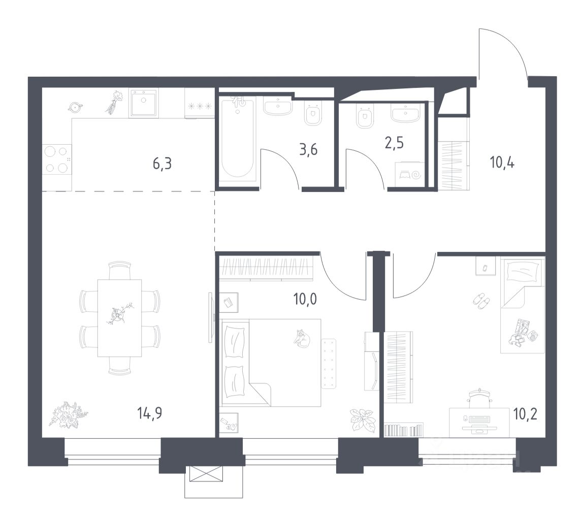 Строим кварталы для жизни с заботой о будущем. Предлагаются 2-комнатные апартаменты бизнес-класса площадью 57,91 кв.м в корпусе 3.1 на 7-м этаже, в жилом комплексе "Верейская 41".