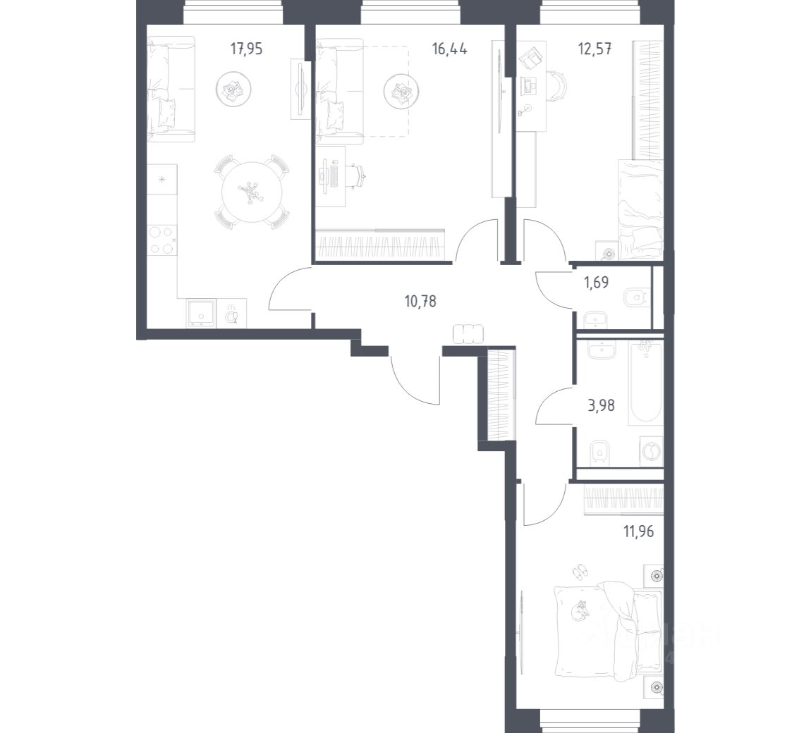 Строим кварталы для жизни с заботой о будущем. Предлагается 3-комнатная квартира комфорт-класса площадью 75,37 кв.м в корпусе 1 на 7-м этаже, в жилом комплексе "Квартал Домашний".