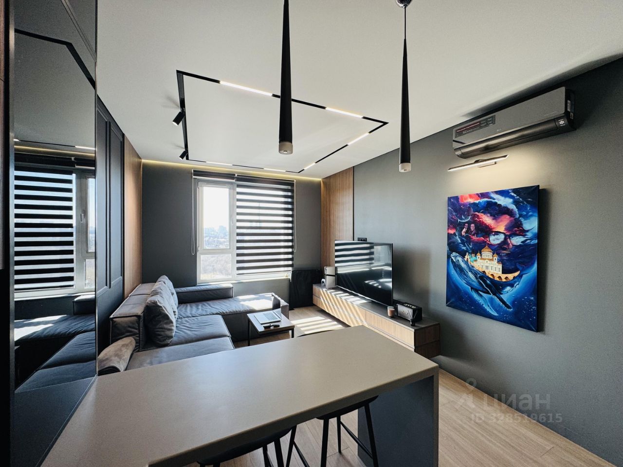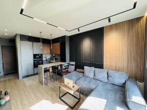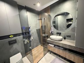 Квартира выполнена по индивидуальному дизайнерскому проекту с использованием премиальных материалов.