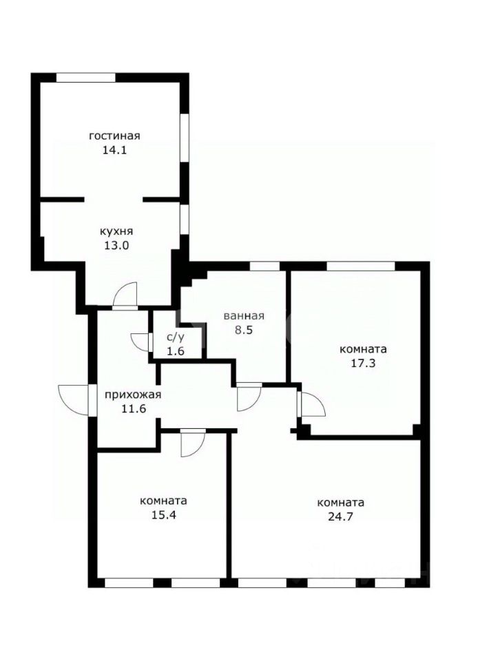 Два санузла, один из которых имеет окно и подготовленные коммуникации для установки ванны.