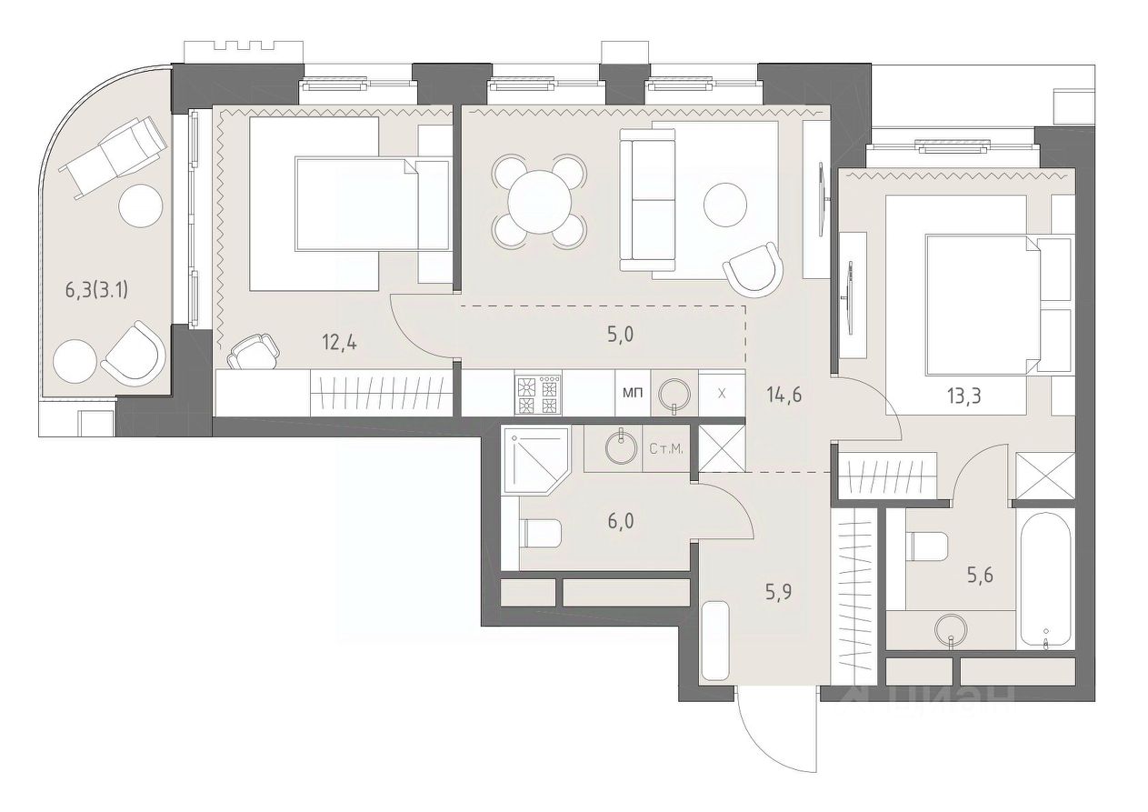 В жилом кластере Родина Парк рядом с природным заказником Долина реки Сетунь продаётся 3-комнатная квартира. Продуманная европланировка, которую легко зонировать под ваши запросы. Потолки от 3,1 м. "Родина Парк" — премиальный семейный кластер с образовательным медиакластером, строящийся на западе Москвы в окружении природного заповедника "Долина реки Сетуни". • Скидки недели на избранный пул лотов • Рассрочка 0% на выгодных условиях до 2 лет • Семейная ипотека, подбор комбо-вариантов ипотечных программ прямо в офисе продаж • Скидки 8% при 100% оплате или ипотеке. ЛОКАЦИЯ: 8 минут пешком до станции БКЛ "Давыдково". 12 минут на автомобиле до Нового Арбата. Удобные выезды на Кутузовский проспект, Аминьевское шоссе. ИНФРАСТРУКТУРА И СЕРВИСЫ ДЛЯ ЖИТЕЛЕЙ - Уникальная экосистема для развития, здоровья и творчества на территории 3,5 Га: - Первый в России образовательный медиакластер (с участием Русской медиагруппы) для творческого развития детей и взрослых с возможностью получить востребованную профессию в сфере шоу-бизнеса. - Инфраструктура и сервисы для семей с детьми на территории жилого кластера (частный детский сад, детские игровые пространства, творческие студии для занятий музыкой и танцами, безопасная и комфортная среда для детей и родителей), событийно-культурная площадка для проведения семейного досуга); - Здоровая среда (биохакинг-центр, фитнес-зал и спортивная инфраструктура во дворе, медитационные пространства, инженерные решения для освещения, свежего воздуха и очистки воды, сервисы красоты и поддержания активного долголетия); - Сервисы заботы (инфраструктура комфорта - подземный паркинг, кладовые, колясочные, консьерж- сервис, умный дом, мобильное приложение, профессиональная управляющая компания, сервисы охраны и обеспечение абсолютной безопасности) - Комьюнити резидентов (социальные пространства для дружеского и делового общения - летний атриум с уличным кинотеатром, зоны отдыха, кафе и рестораны, комьюнити-сервис с культурно- событийной программой в медиакластере); - Модуль благосостояния (комфортные пространства для работы и саморазвития - коворкинги и переговорные). ИНФРАСТРУКТУРА РАЙОНА: Насыщенная образовательная среда: филиалы МГИМО, МГУ, МГТУ, Сколково. Топовые школы: 6 лучших частных школ Москвы и области (Forbes) в 10 минутах езды. Природное окружение для пеших прогулок, спорта и отдыха. "Родина Парк" — это место, где растут и дети, и ваши возможности. Экосистема, где всё подчинено развитию — физически, профессионально, творчески.