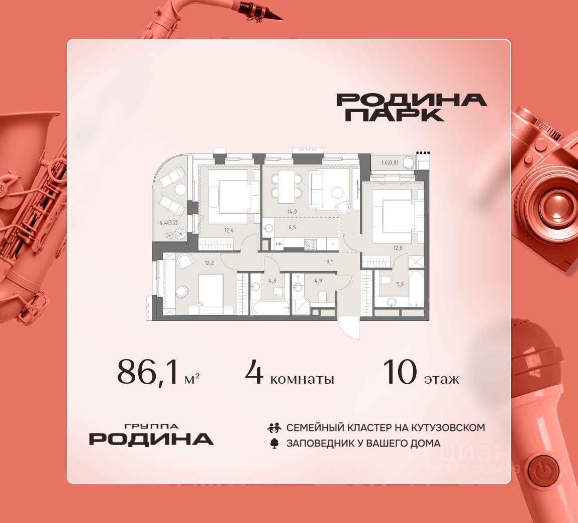 В жилом кластере Родина Парк рядом с природным заказником Долина реки Сетунь продаётся 4-комнатная квартира. Продуманная европланировка, которую легко зонировать под ваши запросы. Потолки от 3,1 м. "Родина Парк" — премиальный семейный кластер с образовательным медиакластером, строящийся на западе Москвы в окружении природного заповедника "Долина реки Сетуни". • Скидки недели на избранный пул лотов • Рассрочка 0% на выгодных условиях до 2 лет • Семейная ипотека, подбор комбо-вариантов ипотечных программ прямо в офисе продаж • Скидки 8% при 100% оплате или ипотеке. ЛОКАЦИЯ: 8 минут пешком до станции БКЛ "Давыдково". 12 минут на автомобиле до Нового Арбата. Удобные выезды на Кутузовский проспект, Аминьевское шоссе. ИНФРАСТРУКТУРА И СЕРВИСЫ ДЛЯ ЖИТЕЛЕЙ - Уникальная экосистема для развития, здоровья и творчества на территории 3,5 Га: - Первый в России образовательный медиакластер (с участием Русской медиагруппы) для творческого развития детей и взрослых с возможностью получить востребованную профессию в сфере шоу-бизнеса. - Инфраструктура и сервисы для семей с детьми на территории жилого кластера (частный детский сад, детские игровые пространства, творческие студии для занятий музыкой и танцами, безопасная и комфортная среда для детей и родителей), событийно-культурная площадка для проведения семейного досуга); - Здоровая среда (биохакинг-центр, фитнес-зал и спортивная инфраструктура во дворе, медитационные пространства, инженерные решения для освещения, свежего воздуха и очистки воды, сервисы красоты и поддержания активного долголетия); - Сервисы заботы (инфраструктура комфорта - подземный паркинг, кладовые, колясочные, консьерж- сервис, умный дом, мобильное приложение, профессиональная управляющая компания, сервисы охраны и обеспечение абсолютной безопасности) - Комьюнити резидентов (социальные пространства для дружеского и делового общения - летний атриум с уличным кинотеатром, зоны отдыха, кафе и рестораны, комьюнити-сервис с культурно- событийной программой в медиакластере); - Модуль благосостояния (комфортные пространства для работы и саморазвития - коворкинги и переговорные). ИНФРАСТРУКТУРА РАЙОНА: Насыщенная образовательная среда: филиалы МГИМО, МГУ, МГТУ, Сколково. Топовые школы: 6 лучших частных школ Москвы и области (Forbes) в 10 минутах езды. Природное окружение для пеших прогулок, спорта и отдыха. "Родина Парк" — это место, где растут и дети, и ваши возможности. Экосистема, где всё подчинено развитию — физически, профессионально, творчески.