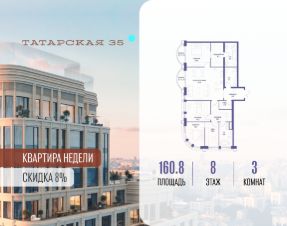 Продается просторная квартира площадью 160.80 м2 в жилом комплексе ТАТАРСКАЯ, 35. Квартира находится в 1 секции корпуса 1. Этаж 8-й из 20.