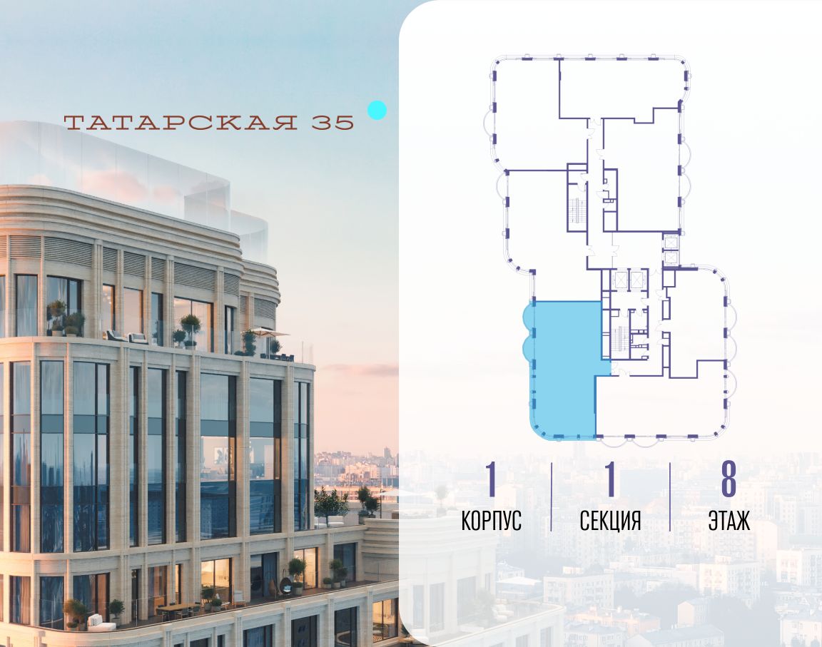 ТАТАРСКАЯ, 35 - новая архитектурная доминанта Замоскворечья, достопримечательность на фотопанорамах исторического центра Москвы. Элитный дом, созданный для тех, кто умеет смотреть далеко вперед, мыслить масштабно и воплощать собственный сценарий жизни.