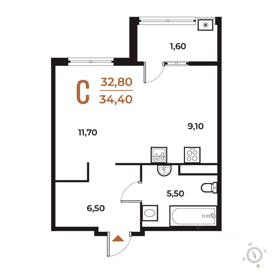 34,4 м²