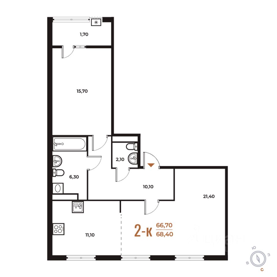 68,4 м²