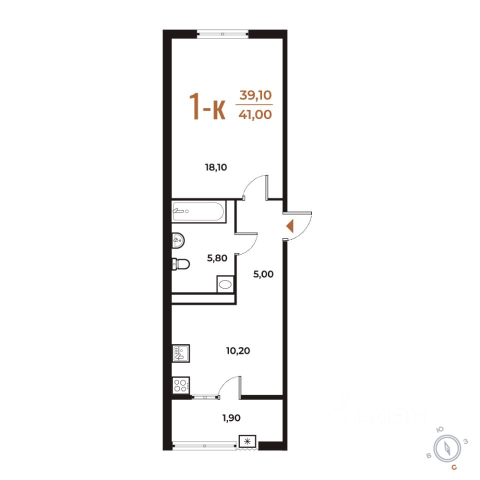 Продается 1-комн. квартира, 41 м²