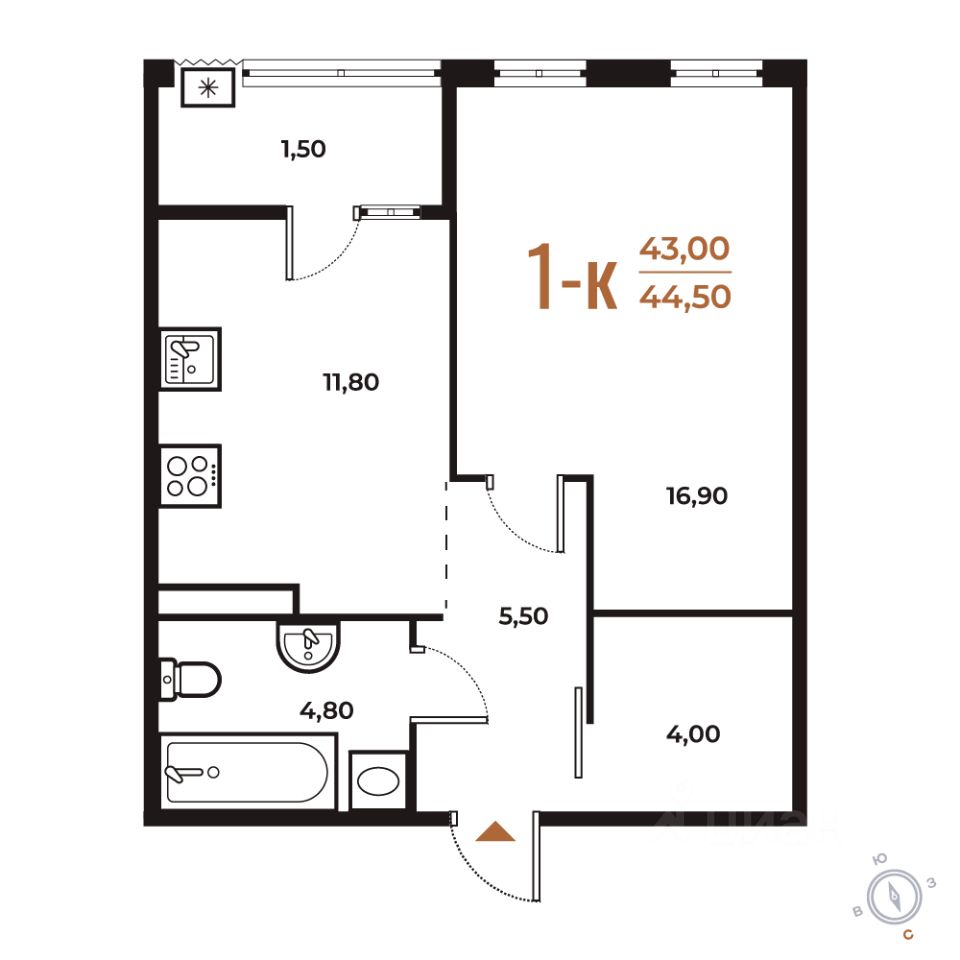44,5 м²