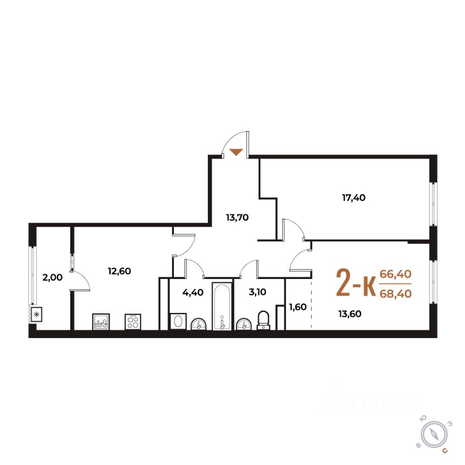 68,4 м²