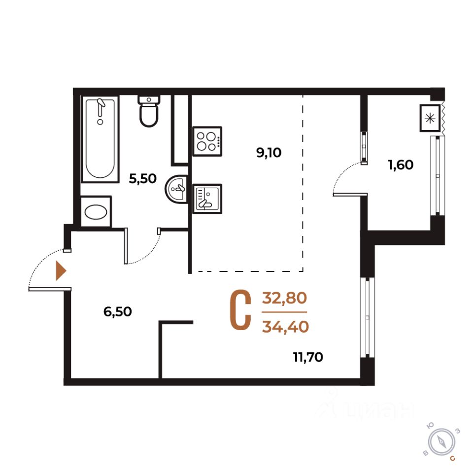 Продаётся студия в строящемся доме (Корпус 1), срок сдачи: I-кв. 2026, общей площадью 34.4 кв.м., на 4 этаже. Комплекс отдельно стоящих жилых корпусов с нежилыми помещениями и подземной автостоянкой.