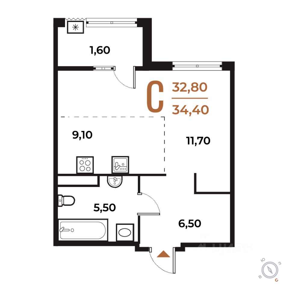 34,4 м²