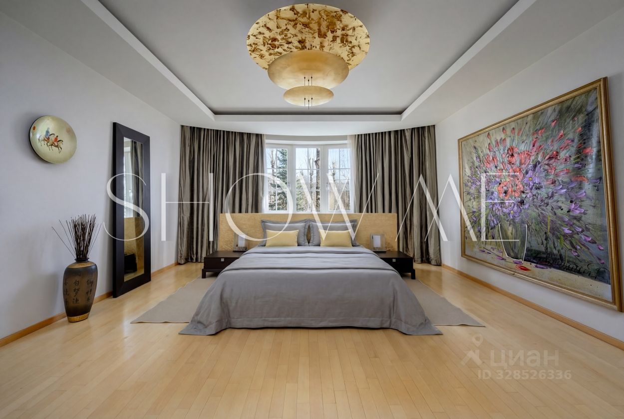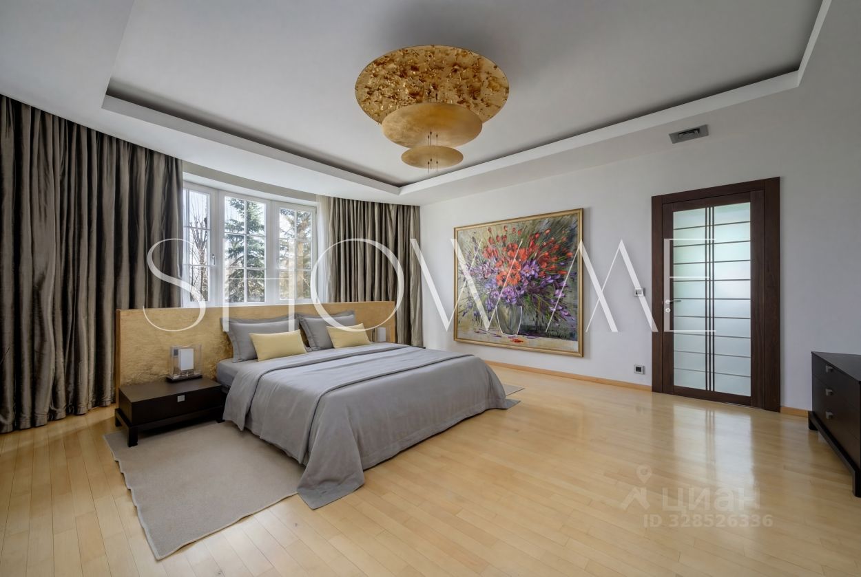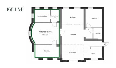 Конфигурация планировки включает в себя: мастер блок хозяйская спальня, хозяйская гардеробная, c/у; гостиная, кухня, столовая; рабочий кабинет; спальня, c/у при спальне.