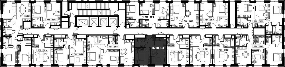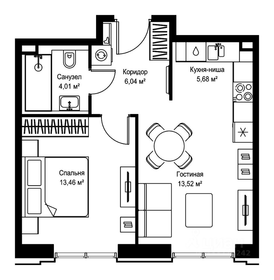 Продаётся 1-комнатная квартира общей площадью 42.71 м² без отделки в ЖК "Селигер Сити" на 34-м этаже башни Лисицкого.